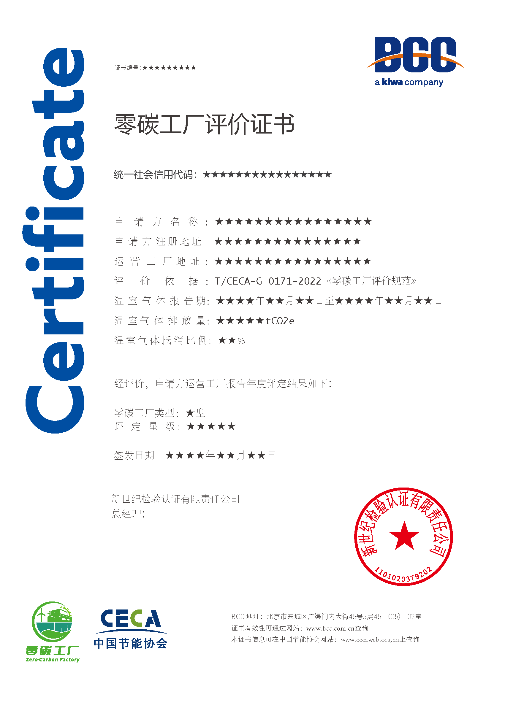 Kiwa BCC順利通過《零碳工廠評價規(guī)范》第三方評價機構(gòu)審查,成功獲得“零碳工廠”評價認證服務(wù)機構(gòu)資格,可頒發(fā)零碳工廠認證證書。