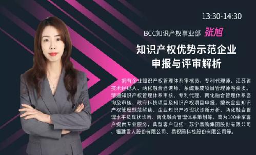 活動(dòng)在BCC知識(shí)產(chǎn)權(quán)事業(yè)部總經(jīng)理侯璐瑤的精彩介紹中拉開帷幕。半個(gè)小時(shí)的活動(dòng)預(yù)熱環(huán)節(jié)中,侯璐瑤對(duì)BCC的各項(xiàng)業(yè)務(wù)以及本次活動(dòng)的講師進(jìn)行了簡短的介紹,并宣傳了疫情期間推出的認(rèn)證費(fèi)用減免政策,表達(dá)了我們對(duì)依托自身專業(yè)服務(wù)能力,為客戶進(jìn)行知識(shí)產(chǎn)權(quán)管理帶來更大的幫助的信心。