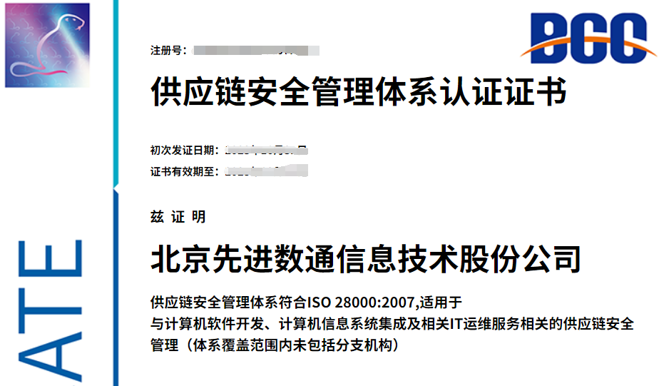 先進數(shù)通獲得供應(yīng)鏈安全管理體系認(rèn)證,是對自身供應(yīng)鏈的梳理和整合,不但加強對供應(yīng)鏈安全的風(fēng)險控制,提高風(fēng)險防御能力,還提高了企業(yè)的美譽度和市場競爭力。
